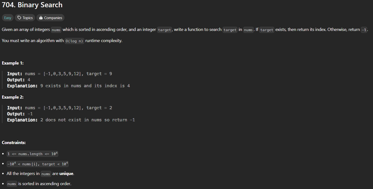 (Easy - Binary Search) Leetcode - 704 : Binary Search