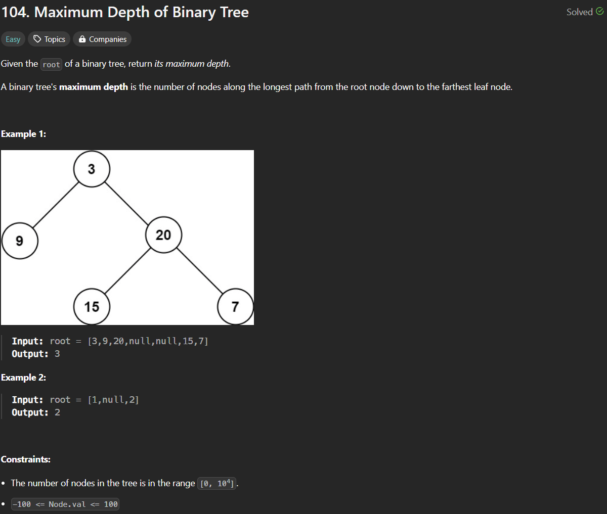 (Easy - DFS) Leetcode - 104. Maximum Depth of Binary Tree