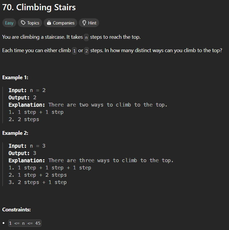 (Easy - DP) Leetcode - 70. Climbing Stairs
