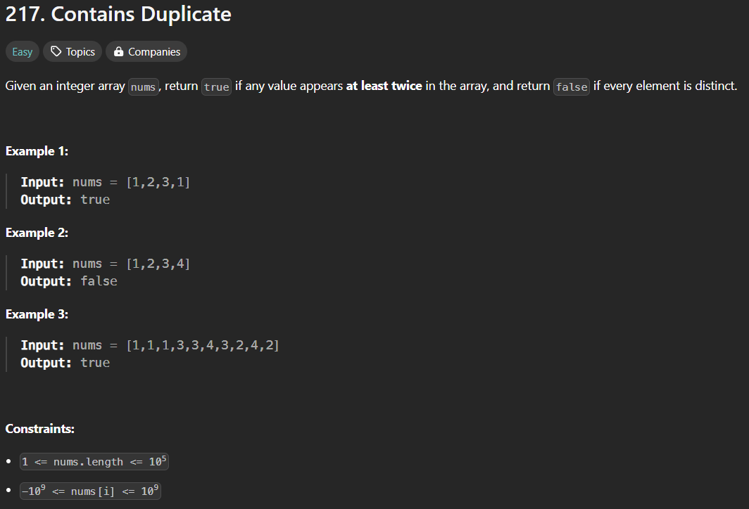 (Easy - Arrays) Leetcode - 217. Contains Duplicate